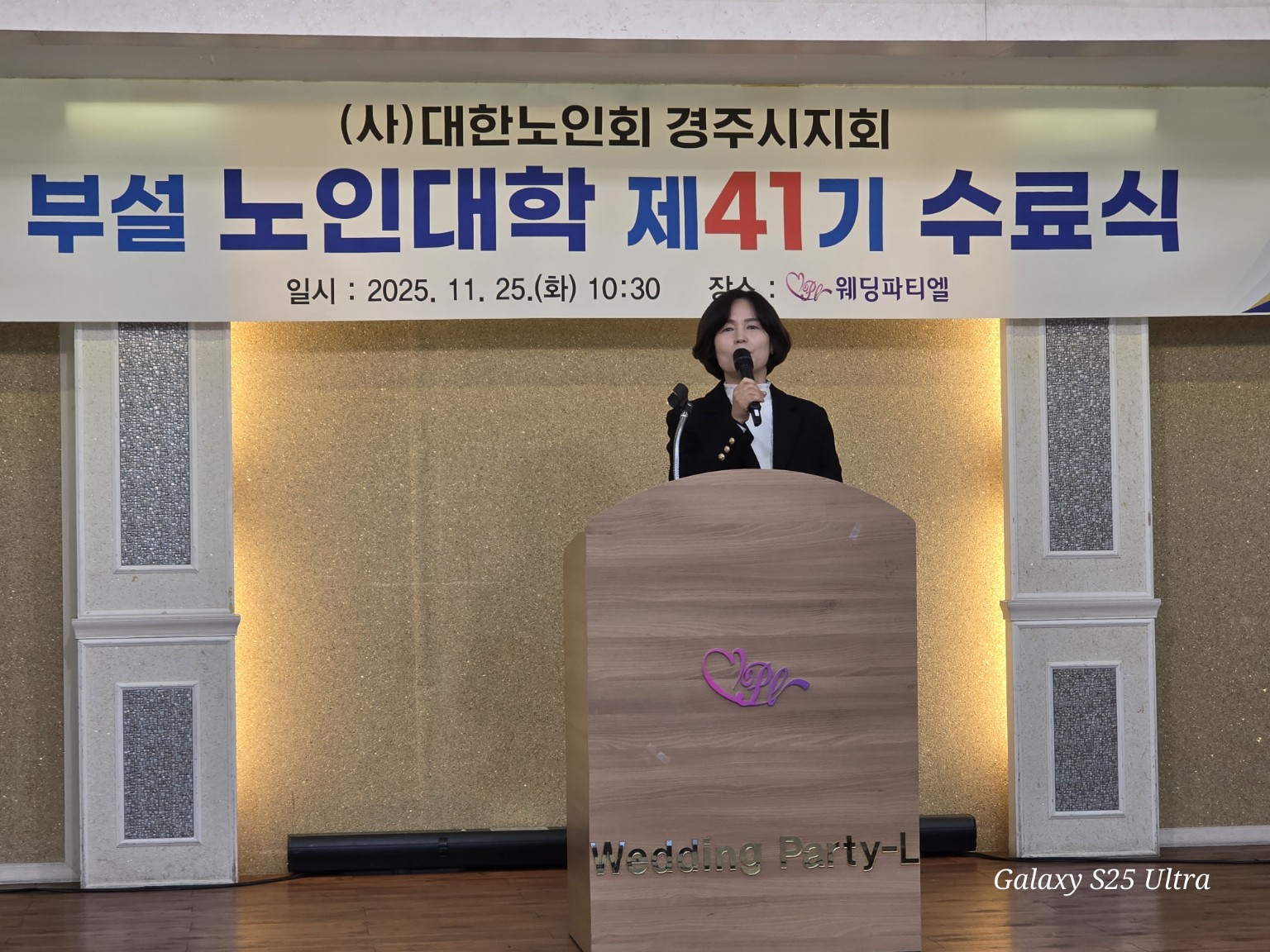 경주시는 대한노인회 경주시지회 부설 ‘경주시 노인대학 제41기 수료식’이 지난 25일 웨딩파티엘에서 성황리에 열렸다고 밝혔다.