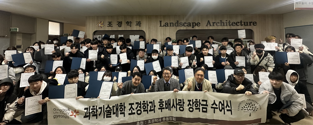동국대 WISE캠퍼스 조경정원디자인학부가 지난 26일 자연과학관 5층 학부 강의실에서 ‘조경학과 제자사랑 장학금 수여식’을 개최했다고 밝혔다.