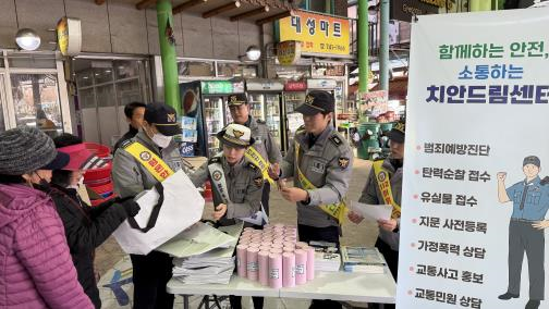 이번 활동은 전통시장 상인과 방문객을 대상으로 실제 피해가 잦은 사기 수법을 쉽게 알리고, 반복되는 사기 유형을 현장에서 직접 안내하기 위해 마련됐다. 경찰은 홍보물품과 범죄예방 전단지를 배부하고, 보이스피싱 전화·문자 대응 요령, 노쇼 사기의 주요 패턴, 예방 행동수칙 등을 설명할 예정이다.