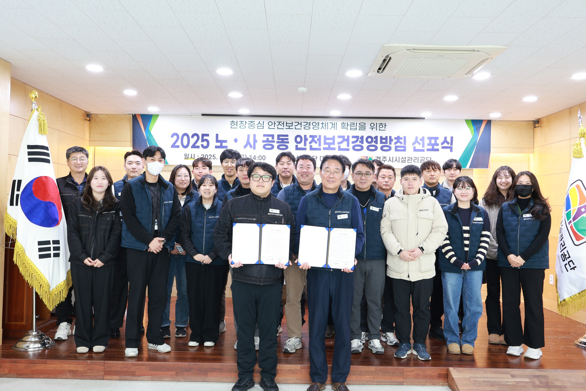 경주시시설관리공단은 지난 5일, 임직원들의 안전한 근무환경 조성을 위해 노사 공동 안전보건경영방침 선포식을 개최했다.