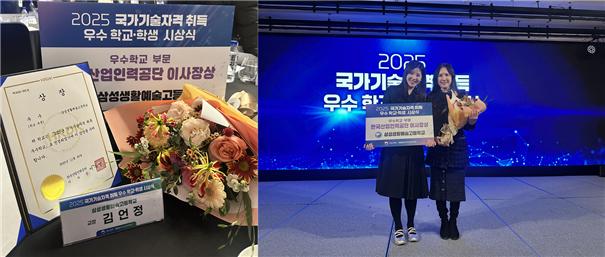 삼성생활예술고등학교(교장 김언정)는 지난 달 11일 ‘2025 국가기술자격 취득 우수학교’ 시상식에서 우수학교로 선정되는 쾌거를 거두었다.