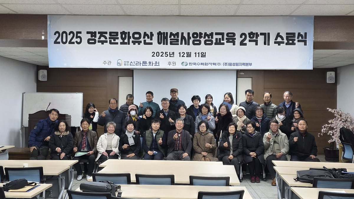 사단법인 신라문화원(원장 진병길)은 12일, 「2025년 하반기 경주문화유산해설사 양성교육」 수료식을 오전반·저녁반으로 개최하고 16주간의 교육과정을 성공적으로 마무리했다.