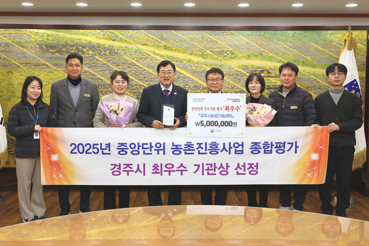 경주시는 농촌진흥사업 전반에서의 우수한 성과를 인정받아 지난 4일 농촌진흥청에서 열린 '2025년 농업과학기술 성과공유대회'에서 농촌진흥사업 종합평가 ‘최우수상’을 수상했다고 밝혔다.