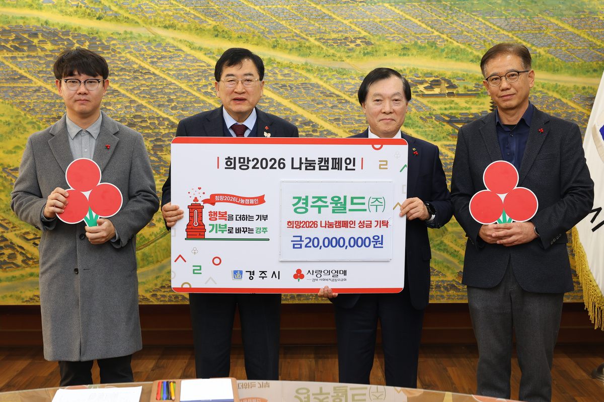 경주월드(주)(대표 정원기)에서 지난 18일 경주시청을 방문하여 희망2026나눔캠페인 성금 2천만원을 전달하였다