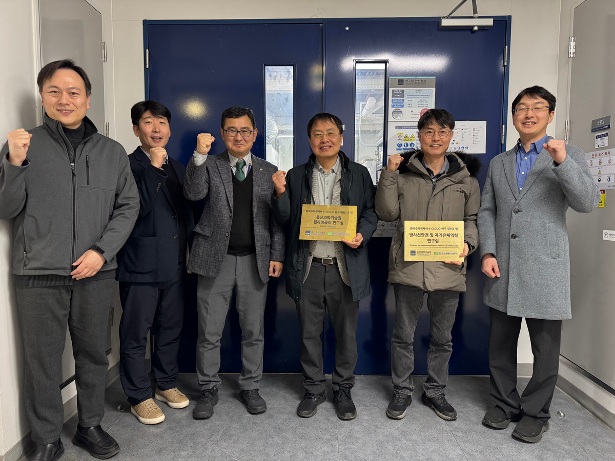 한국수력원자력(이하 한수원)이 지난 22일 울산과학기술원(UNIST) 등을 방문해 ‘K-CLOUD(사외공모과제) 연구기관’ 현판을 전달했다.