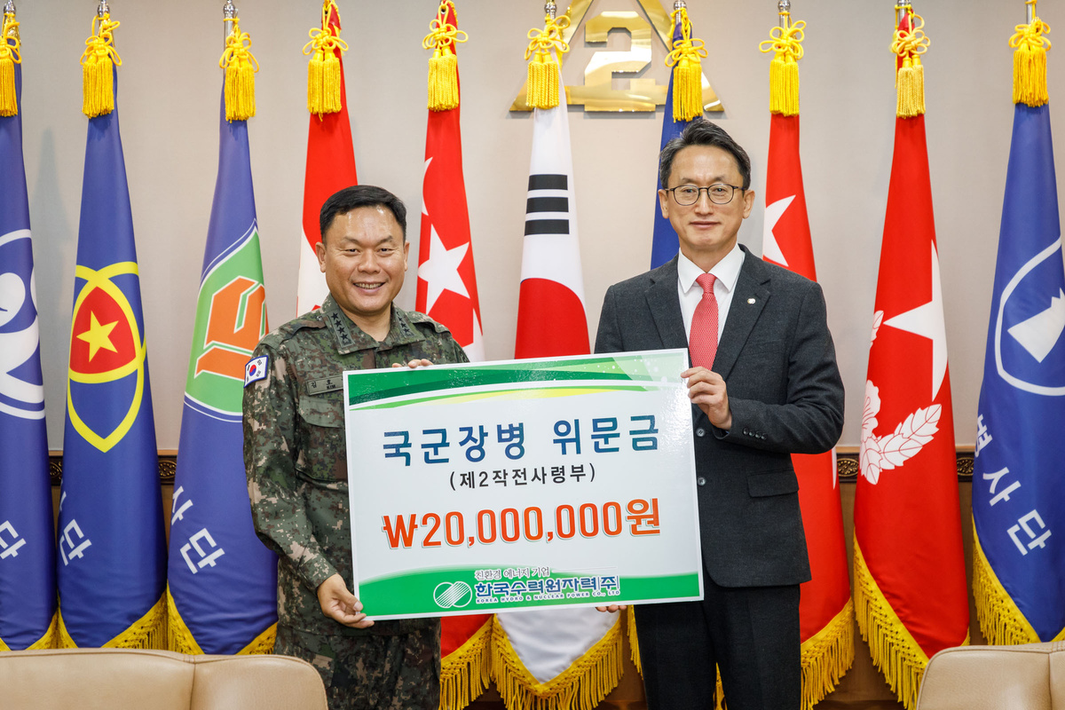 김호복 육군 제2작전사령관은 “연말연시 맞아 국방의 의무를 다하고 있는 군 장병들을 위문해 주신 한수원 직원분들께 감사드린다”라며, 한수원에 감사패를 전달했다.