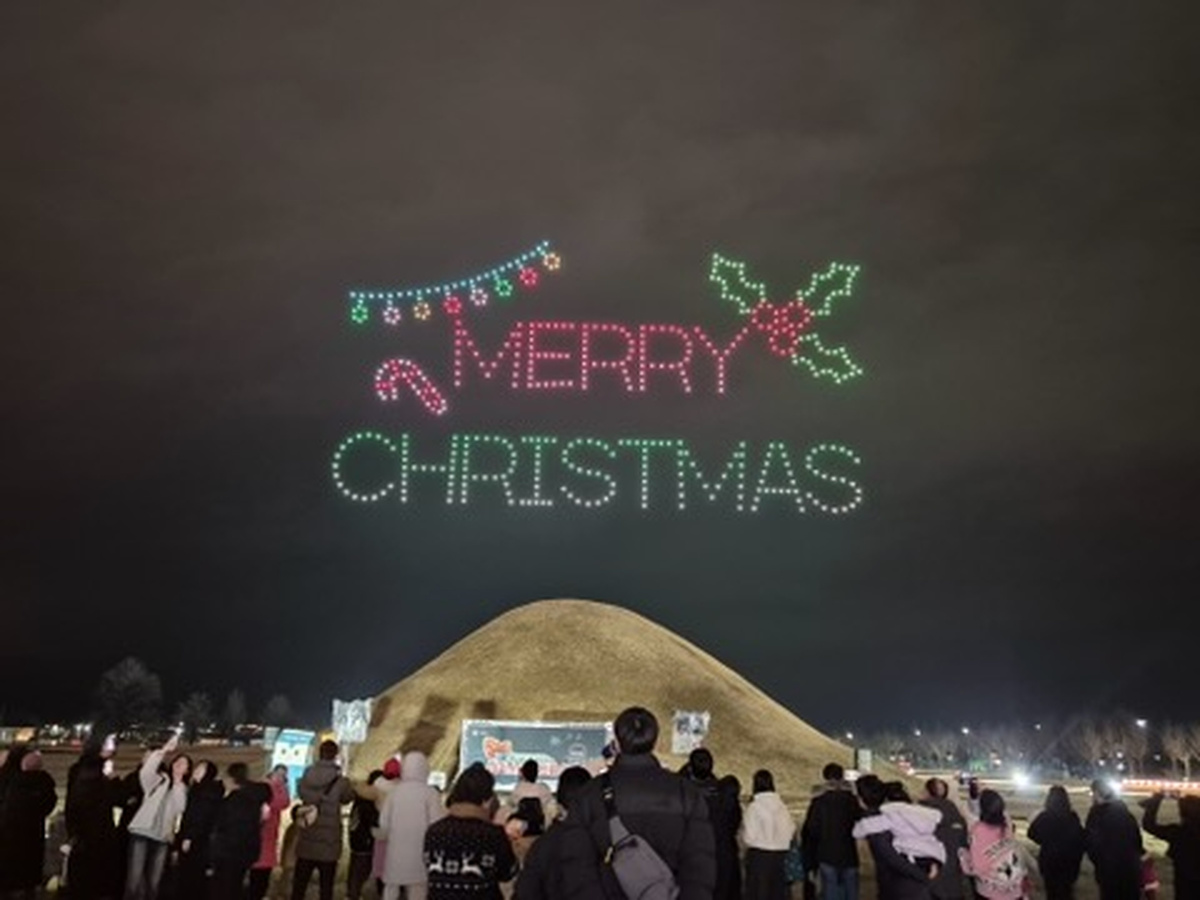 경주시는 지난 24일 황남동 고분군 일원에서 ‘브레드이발소와 함께하는 크리스마스 드론 아트쇼’를 개최해 시민과 관광객에게 특별한 연말 추억을 선사했다.