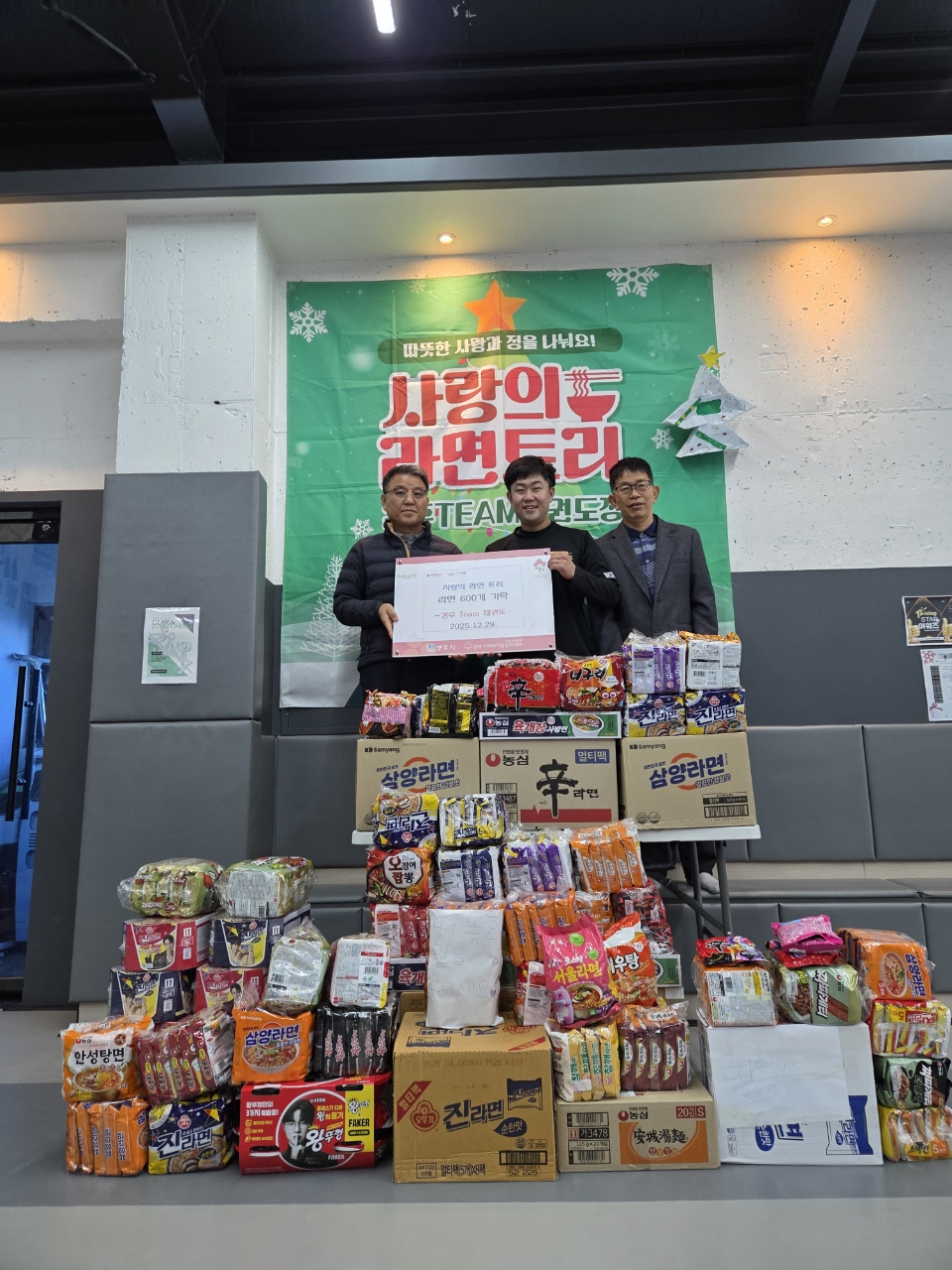 경주시 현곡면 Team 태권도(관장 엄재일)는 지난 29일 칭찬 라면을 모아 어려운 이웃에게 기부하는 사랑의 라면 트리(라면 600개)를 현곡면행정복지센터에 전달 했다.