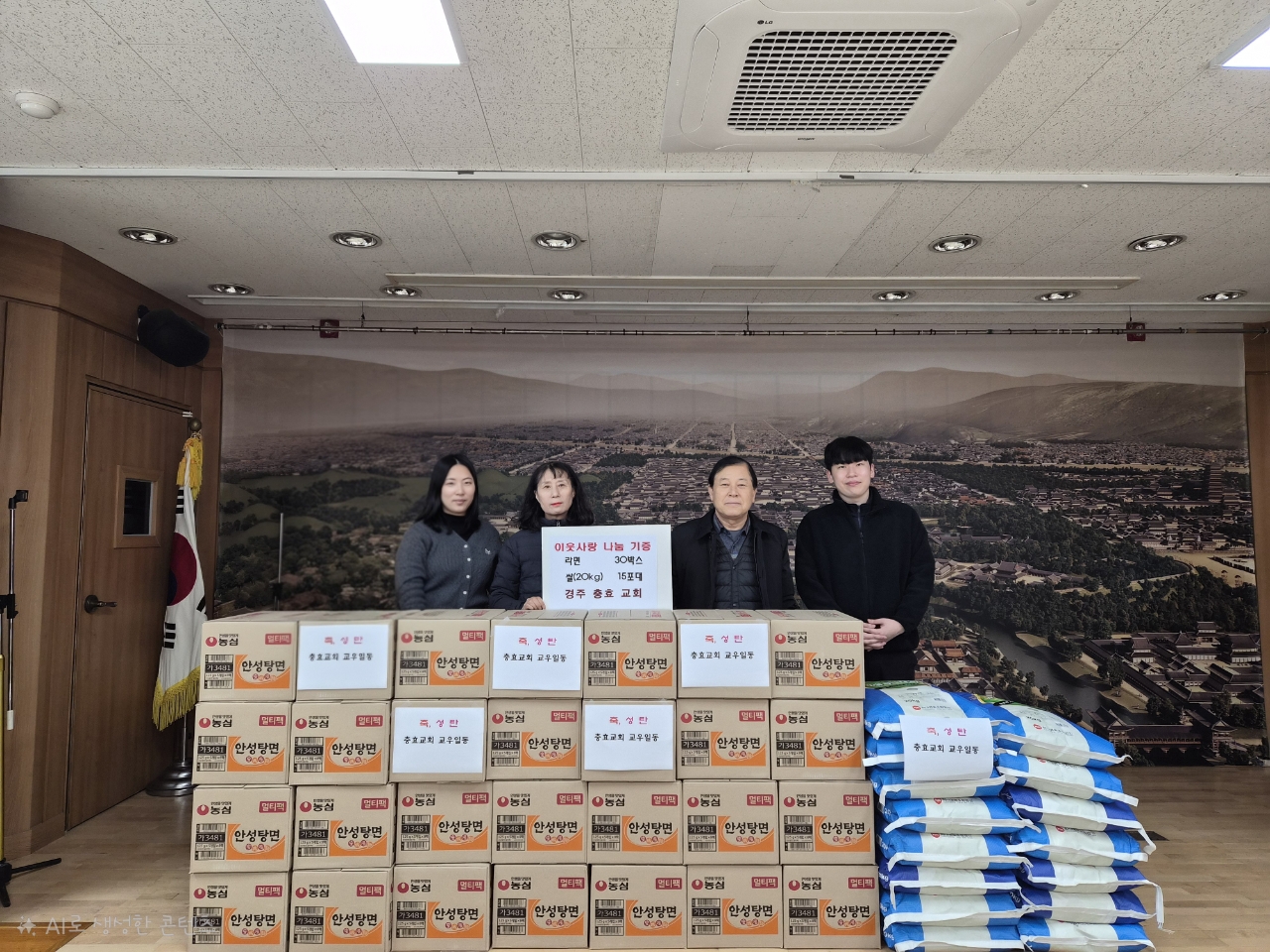 지난 26일 경주시 선도동 충효교회는 관내 어려운 이웃들을 위해 라면 30박스, 쌀(20kg) 15포대를 선도동행정복지센터에 기탁하였다.