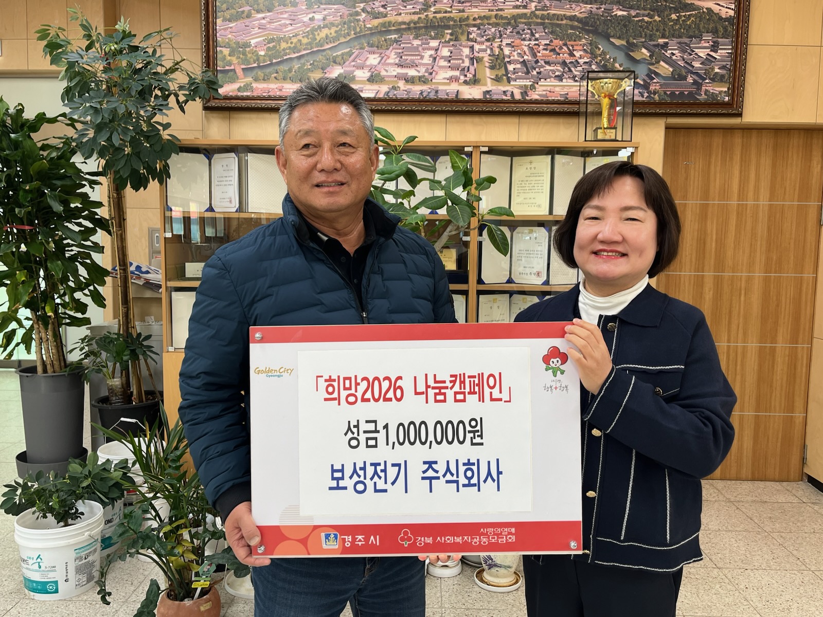 보성전기 주식회사(대표 정윤균)는 29일 동천동 행정복지센터를 찾아 어려운 이웃을 위해 써 달며 성금 100만 원을 기탁했다.