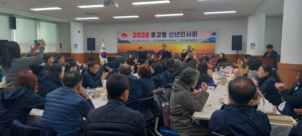 2026년 용강동 주민자치센터 기타교실 공연으로 시작된 이 날 행사는 참석자들의 신년 인사, 떡 절단식, 건배 제의, 떡국 나눔 등의 순으로 진행됐다.