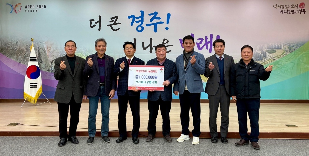 건천읍 이장협의회(회장 장상규)는 12일, 새해 첫 이장회의를 개최하고 건천읍(읍장 이헌득)에 희망2026 나눔캠페인 성금으로 1백만원을 기탁했다.