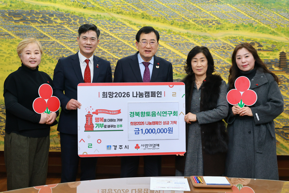 경주시는 지난 14일 시청에서 경북향토음식연구회(회장 조중래)의 희망2026 나눔 캠페인 성금 100만원 기탁식을 개최했다.