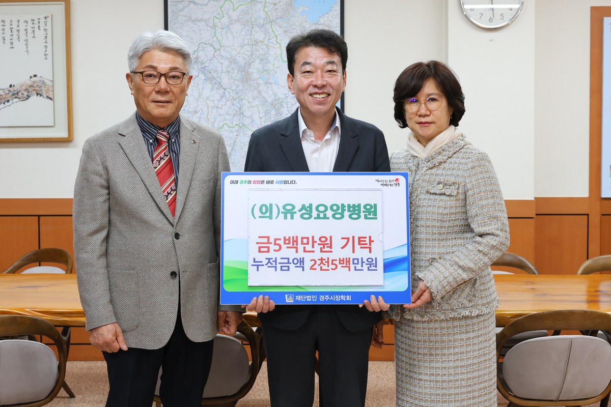 이에 (재)경주시장학회 이사장(경주시장 주낙영)은 자라나는 학생들과 어려운 이웃을 위해 꾸준히 선행을 베풀어준 (의)포항유성요양병원에에 감사의 뜻을 전하며 “기탁한 장학금은 가정형편이 어려운 인재들을 위해 소중하게 잘 사용하겠다.”고 말했다.