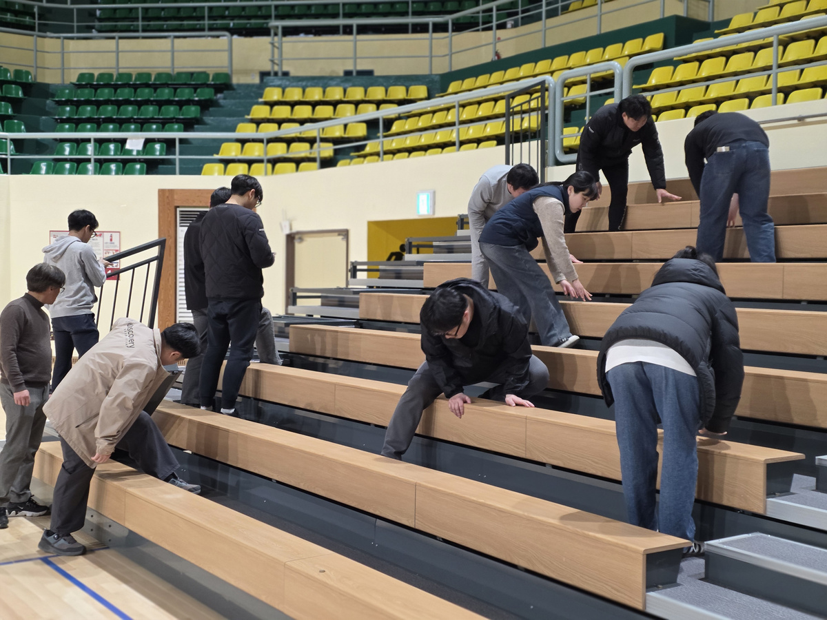 - 2부 시운전 경기: 족구, 배드민턴 등 실제 경기를 통한 시운전으로 마루 충격 흡수력 및 가변석 하중 안전성 실증