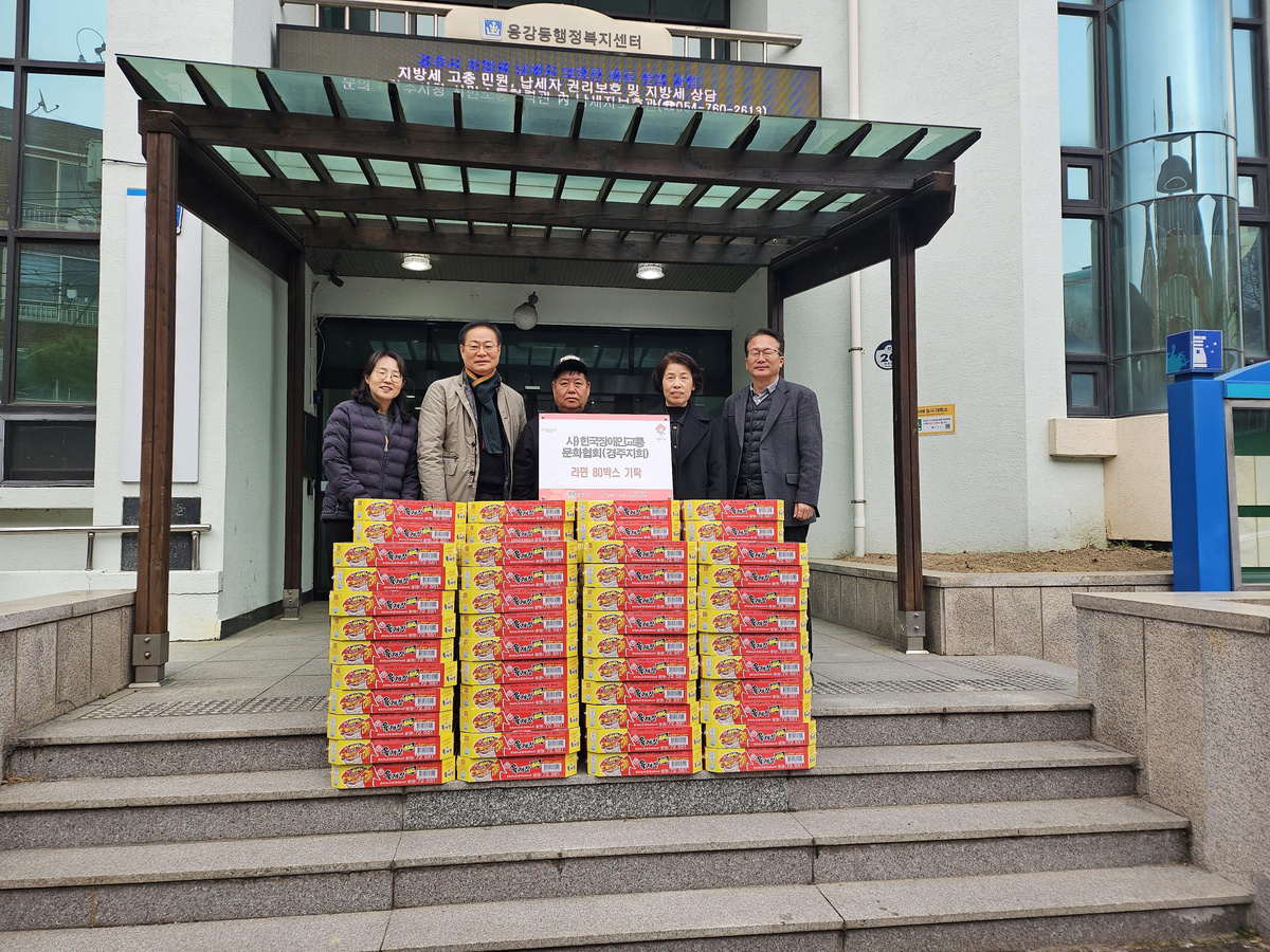 (사)한국장애인교통문화협회 경주지회(총무 김현규)는 지난 19일 용강동행정복지센터를 방문하여 취약계층을 위해 컵라면 80박스를 기탁하였다.