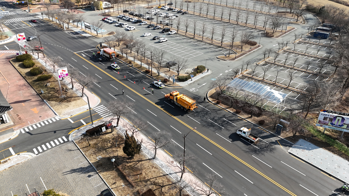 훈련에서는 제설차량을 활용한 신속한 도로 정비와 염화칼슘 살포, 교통 통제 및 우회도로 안내, 현장 안전관리 등 실제 재난 발생 시 적용 가능한 대응 절차를 단계별로 점검했다.
