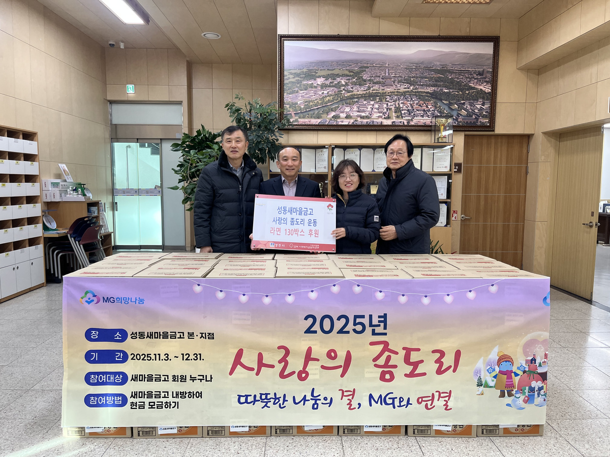 진창호 성동새마을금고 이사장은 “명절을 맞아 이웃들이 조금이나마 따뜻한 시간을 보낼 수 있기를 바라는 마음으로 「사랑의 좀도리」나눔을 준비했다.”며 “앞으로도 주민들과 함께하는 나눔 활동을 지속적으로 이어가겠다.”고 밝혔다.