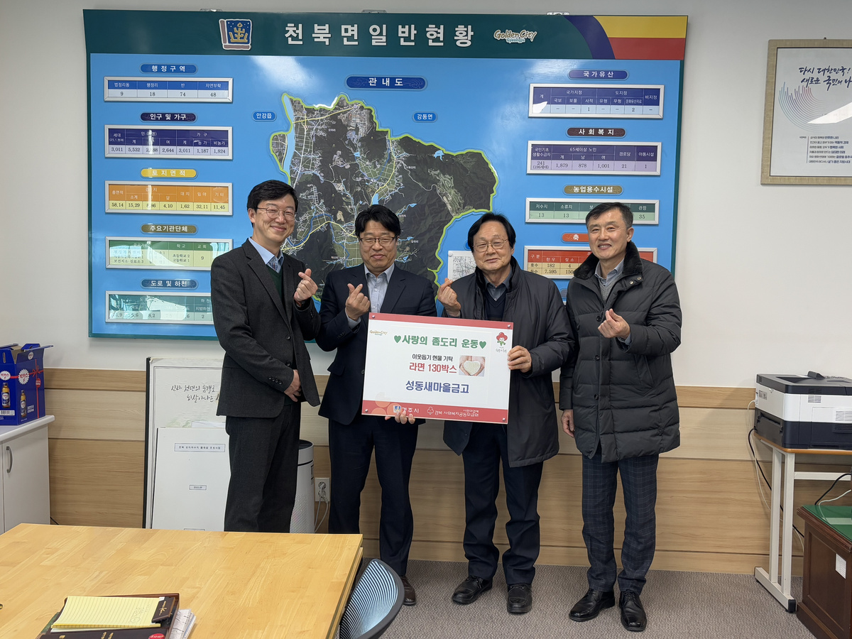 성동새마을금고(이사장 진창호)에서 2026년 1월 28일(수) 천북면에 거주하는 저소득층 이웃을 위해 천북면행정복지센터에 라면 130박스를 기탁하였다.