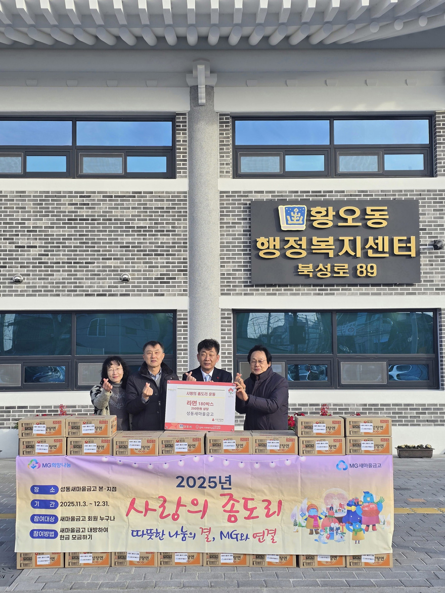 김상문 황오동장은 “매년 잊지 않고 이웃들에게 희망의 손길을 내밀어 주시는 성동새마을금고에 깊은 감사를 드린다”, “기탁된 라면은 저소득 취약계층 등 도움이 필요한 가구에 소중히 전달하여, 소외되는 이웃 없이 모두가 따뜻한 명절을 보낼 수 있도록 세심히 살피겠다”고 화답했다.