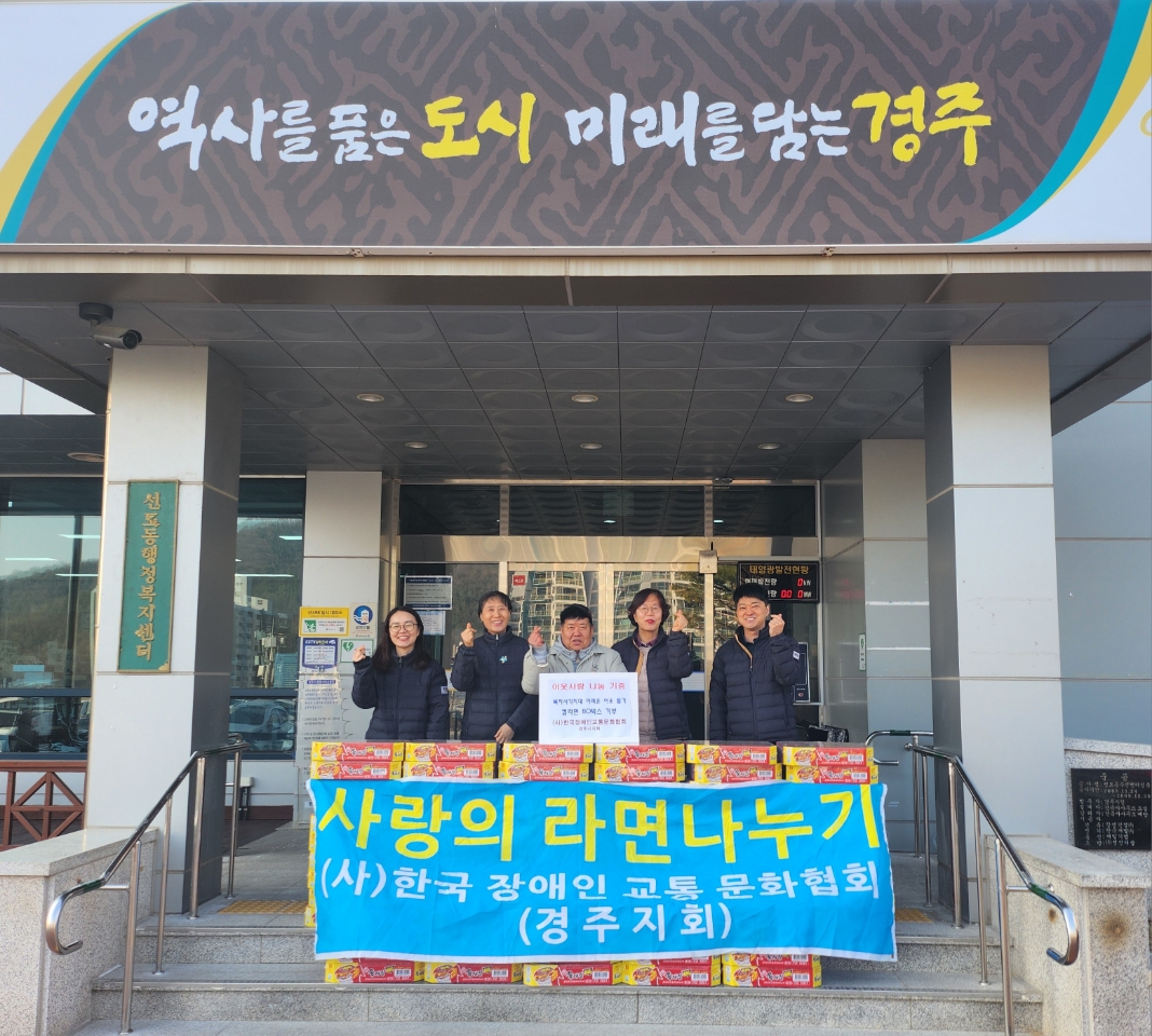 사)한국장애인교통문화협회 경주시지회는 2026년 1월 29일(목) 선도동행정복지센터를 방문하여 관내 저소득 취약계층을 위해 컵라면 80박스를 기탁하였다.