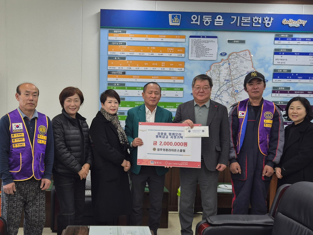 경주 외동라이온스클럽은 평소 희망 나눔캠페인 성금 기탁, 환경정비활동 등 지역사회를 위한 나눔 활동을 지속적으로 실천하여 지역 내 나눔 문화 조성에 앞장서고 있다.