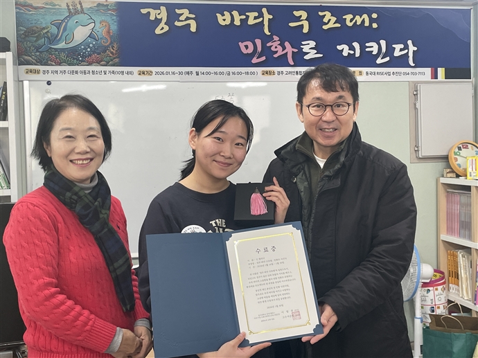 동국대학교 WISE캠퍼스(총장 류완하) RISE사업추진단 포용사회혁신교육사업단이 지난 1월 30일 경북고려인통합지원센터에서 다문화 가정 아동을 위한 예술·환경 융합 프로그램 「민화로 지킨다, 경주바다구조대」를 성공적으로 운영하고, 성과 발표 및 수료식을 개최했다고 밝혔다.