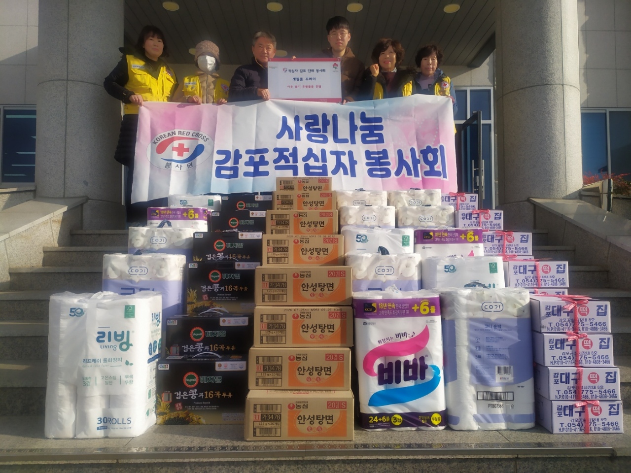 적십자감포단위봉사회(회장 정인순)는 설날을 맞아 지난 4일 관내 복지사각지대에 놓인 생활형편이 어려운 20여 가구를 대상으로 떡과 라면, 두유, 화장지 등 150만 원 상당의 생필품을 전달했다.