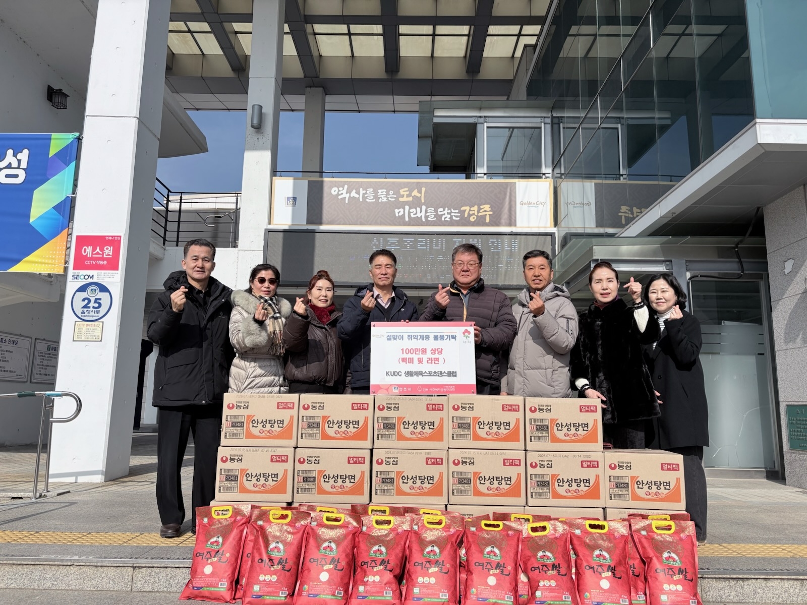 KUDC 생활체육스포츠댄스클럽(회장 곽상도)에서 지난 6일(금) 설 명절을 맞이하여 100만원 상당 생필품(라면 18박스, 쌀 17포)을 외동읍 행정복지센터에 기탁하였다.
