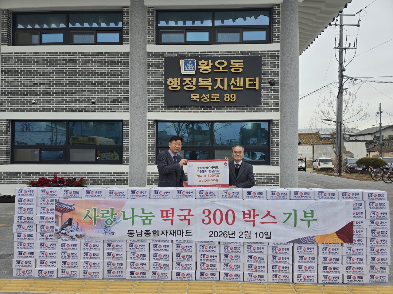 경주시 황오동 소재의 동남종합자재마트(김진호 대표)는 지난 10일(화), 황오동 행정복지센터를 방문해 관내 어려운 이웃들이 따뜻한 설 명절을 보낼 수 있도록 떡국 떡 300박스(300만 원 상당)를 전달했다.