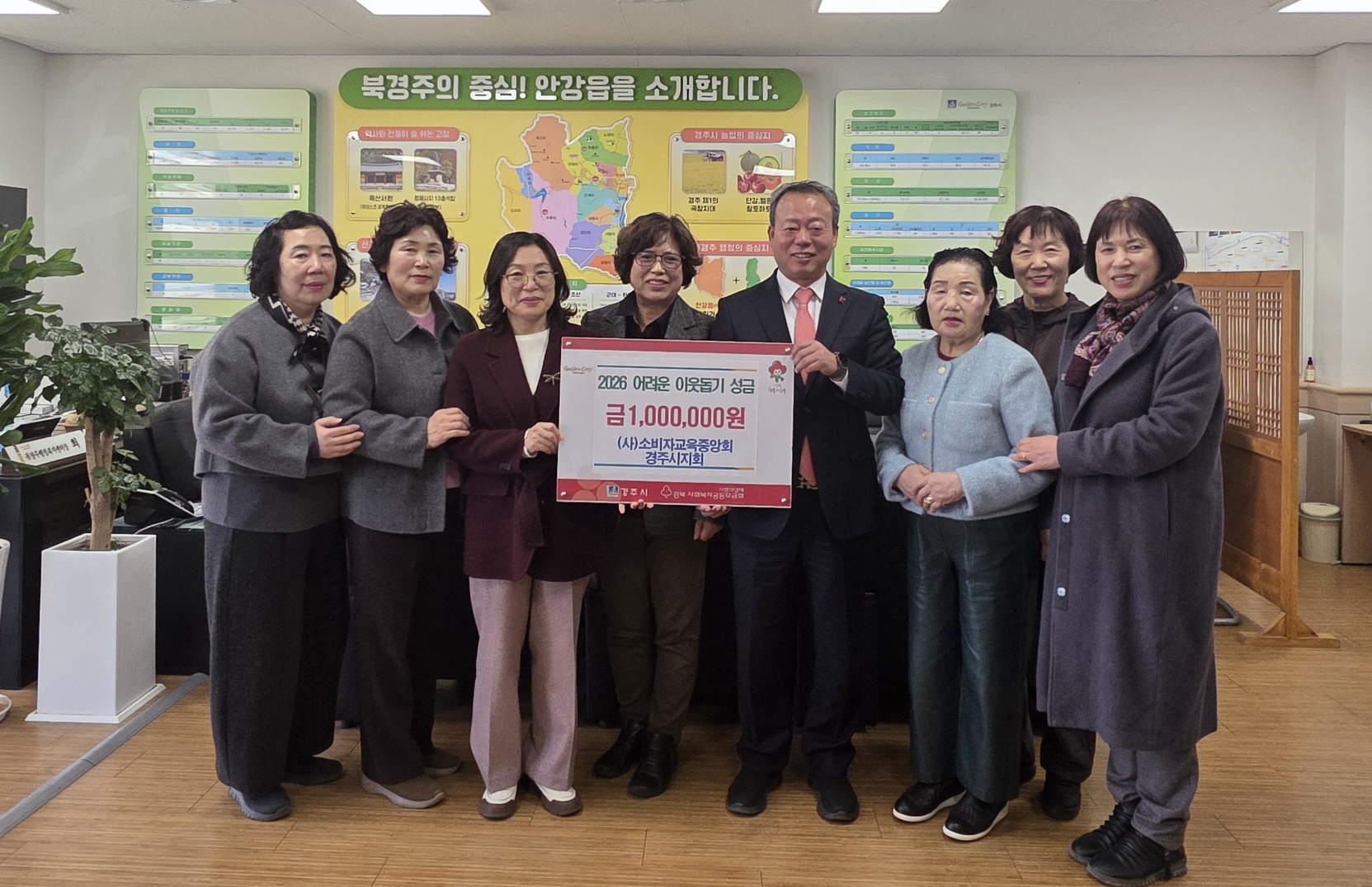 지난 12일, (사)소비자교육중앙회 경주시지회는 북경주행정복지센터를 방문해 지역 내 어려운 이웃을 돕기 위한 성금 100만 원을 기탁했다.