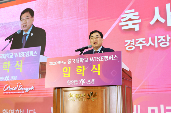 주낙영 경주시장이 동국대학교 WISE캠퍼스 입학식에 참석해 신입생들의 힘찬 출발을 응원했다.