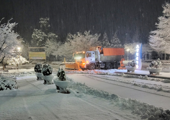 제설 작업은 △지방도 921호선(산내 대현) △군도 11호선(서면 천촌~산내 우라) △석굴로·불국로 △지방도 904호선(현곡 남사재·건천 화천~내남 비지) △군도 16호선(산내 감산) △군도 15호선(마우나오션리조트) △지방도 909호선(서면) △군도 5호선(내남 박달) △태종로·산업로 및 주요 교량·지하차도 등 관내 간선도로를 중심으로 진행됐다.