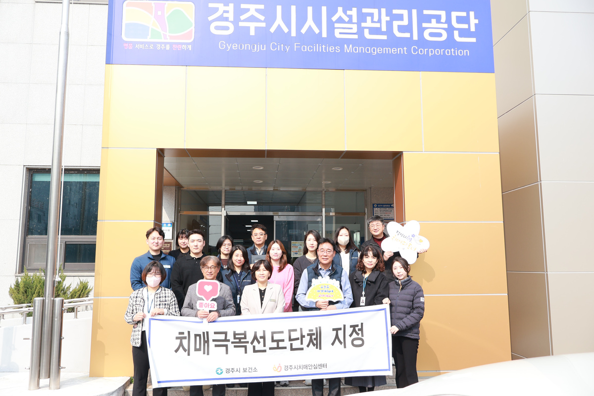 경주시시설관리공단(이사장 김진태)은 초고령화 시대를 맞아 지역사회 치매 예방과 안전망 구축에 동참하기 위해 경주시치매안심센터와 업무협약(MOU)을 체결하고, ‘치매극복선도단체’로 지정되어 현판식을 가졌다고 25일 밝혔다.