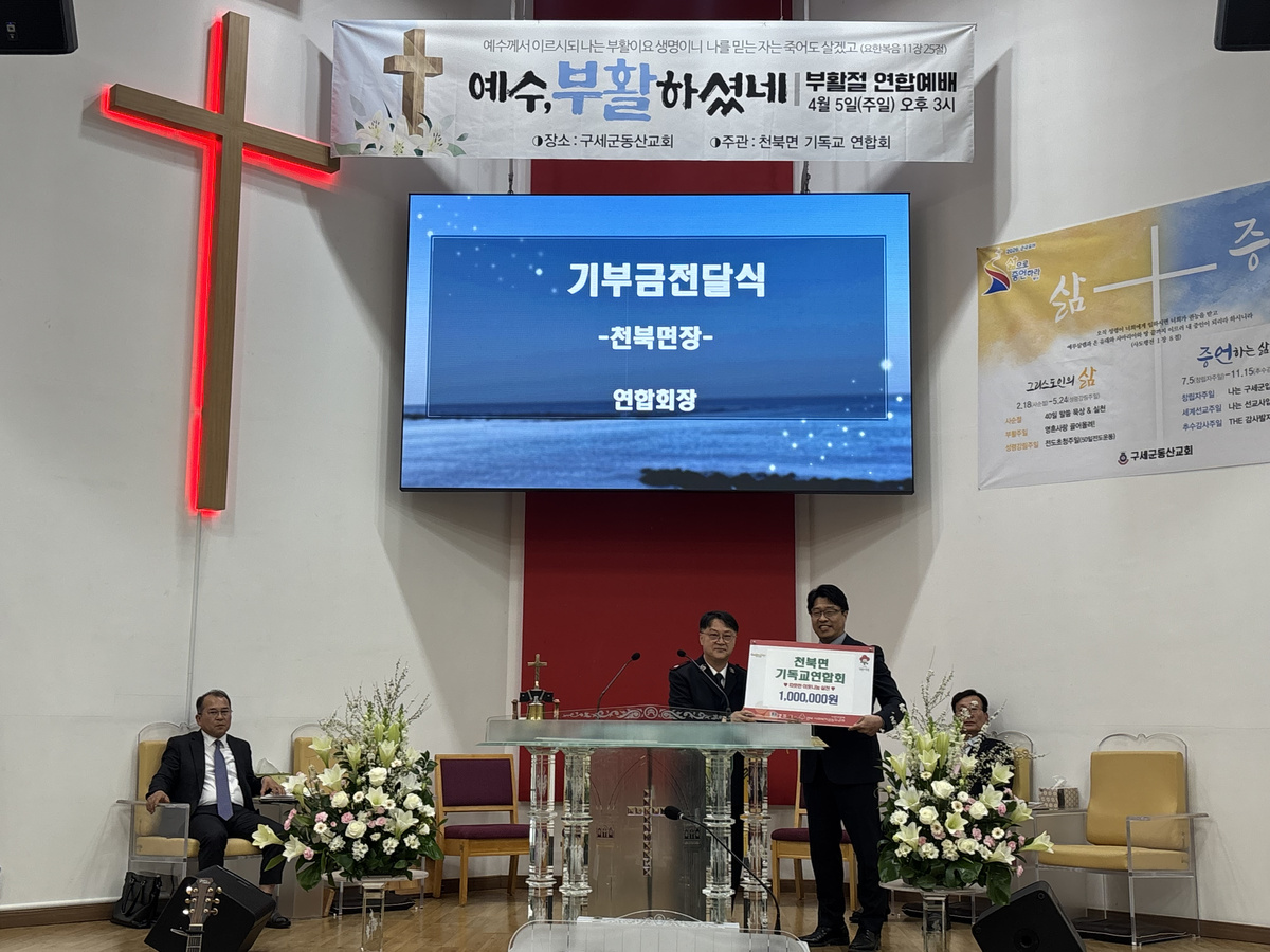 경주시 천북면기독교연합회(대표회장 김근수 사관)는 2026년 4월 5일(일) 천북면 관내 어려운 이웃을 위한 성금 백만원을 기탁하였다.