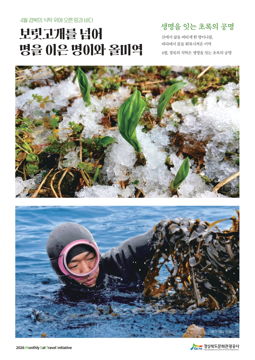 경북문화관광공사(사장 김남일, 이하 공사)는 4월 ‘경북 미식여행 METI(Monthly Eating Travel Initiative)’ 테마로 보릿고개 시기부터 생명을 이어온 제철 식재료인 명이나물과 올미역을 소개하는 미식 콘텐츠를 선보였다고 밝혔다.