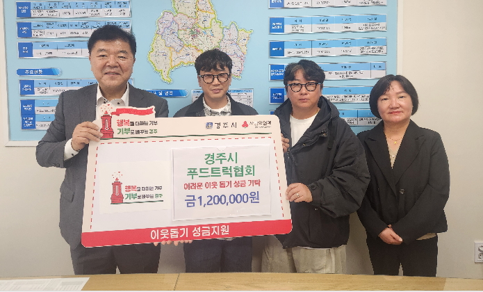 신현정 경주푸드트럭협회장은 “지역에서 받은 관심과 사랑에 보답하고자 회원들과 뜻을 모아 성금을 마련했다”며 “앞으로도 지역사회와 함께 성장하며 나눔 활동을 이어가겠다”고 말했다.