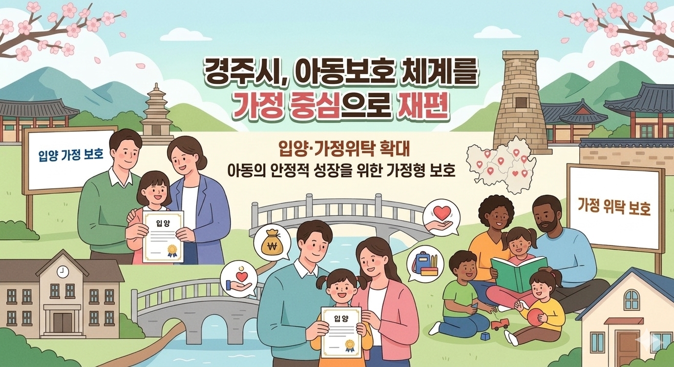 2026년 3월 31일 기준 경주시 보호아동 가운데 입양아동은 36세대 37명, 가정위탁 아동은 56세대 68명이다.