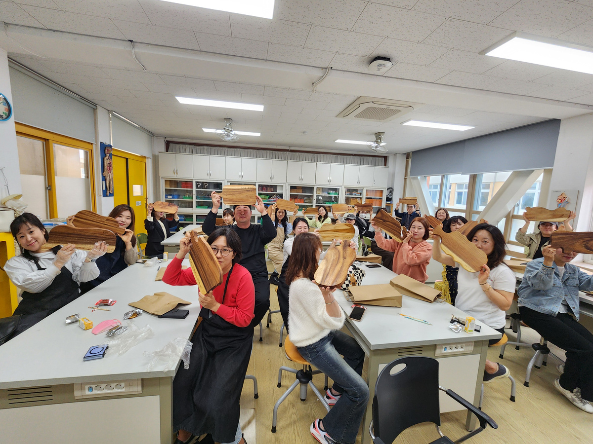 연수는 강라희 강사의 지도 아래 진행되었으며, 학부모들은 원목 나무에 대해 배우고 자신만의 디자인을 구상한 뒤 직접 플레이팅 도마를 제작하였다. 제작 과정에서 학부모들은 서로의 아이디어를 공유하며 즐겁게 협력하였고, 마지막에는 제작 소감을 나누며 성취감을 함께 느꼈다.