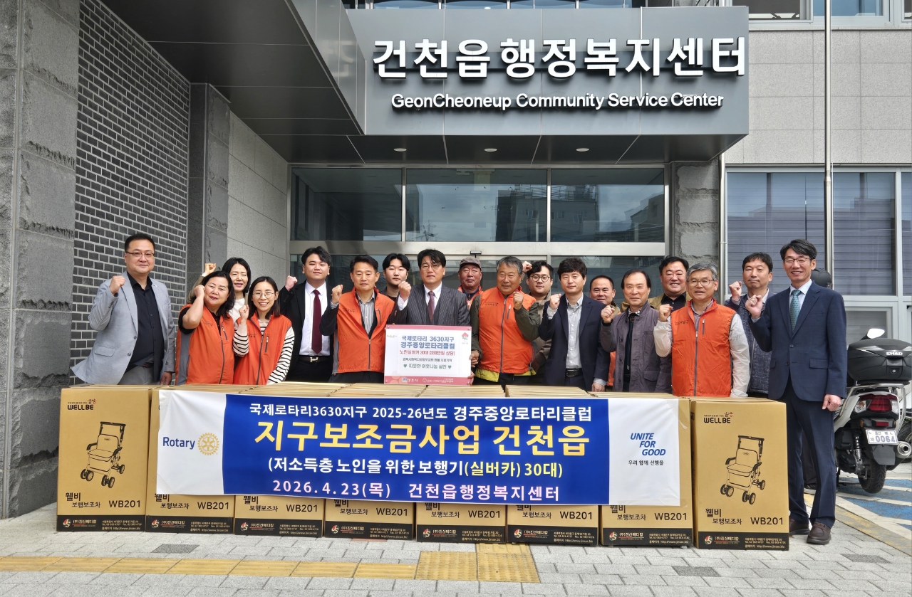이에 이헌득 건천읍장은 “어르신들의 이동 편의를 위해 소중한 후원을 해주신 경주중앙로타리클럽에 깊이 감사 드린다”며 “앞으로도 지역사회와 함께 어르신 복지 향상에 힘쓰겠다”고 말했다.