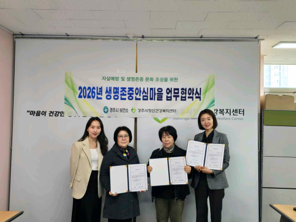 경주시정신건강복지센터(센터장 박재홍)는 지난 23일 현곡면 금장주공 경로당, 삼성아파트 경로당과 ‘생명존중안심마을’ 조성을 위한 업무협약을 체결했다.