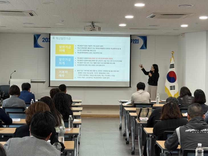 이번 연수는 새롭게 선출된 학교운영위원장을 대상으로 학교운영위원장의 역할 확립 및 역량 강화를 위해 학교운영위원회의 역할과 의무, 학교 발전기금회계 조성·운용 요령, 주민참여예산의 이해에 대해 설명하는 시간을 가졌다.