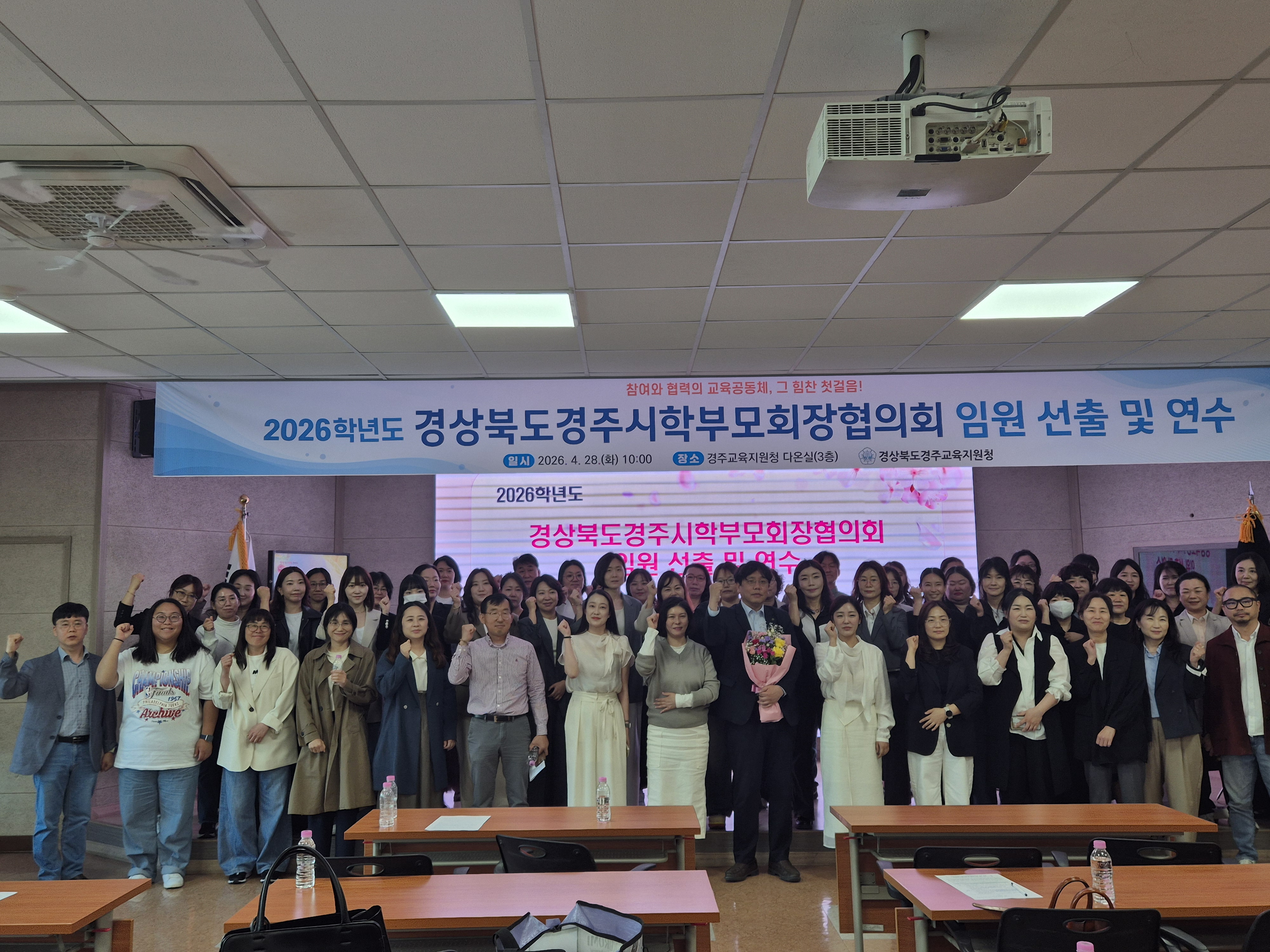 경상북도경주교육지원청(교육장 황영애)은 2026년 4월 28일(화) 경주교육지원청 3층 다온실에서 관내 초․중․고‧특수학교 학부모회장들이 참석한 가운데 경상북도경주시학부모회장협의회 임원을 선출하고 학부모 역량 강화를 위한 연수를 실시하였다.